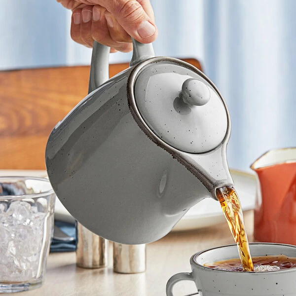 Acopa Keystone 32 Oz. Granite Gray Stoneware Teapot With Lid