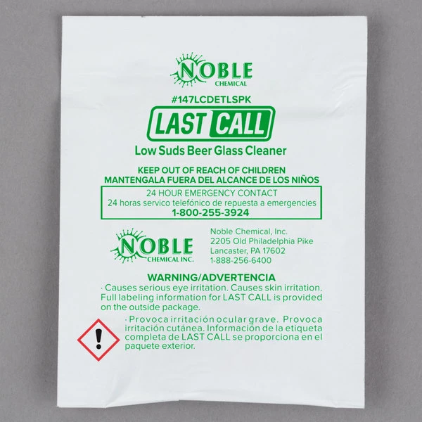 Be the first to review “Noble Chemical 0.5 Oz. Last Call Low Suds Powdered Bar Glass Cleaner Packet – 100/Case” Cancel reply
