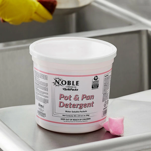 Noble Chemical QuikPacks 0.5 Oz. Pot & Pan Detergent Packs 90 Count Tub – 2/Case