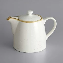 Acopa Keystone 32 Oz. Vanilla Bean Stoneware Teapot With Lid
