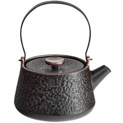 Acopa Heika 24 Oz. Black Matte Textured Stoneware Teapot With Lid